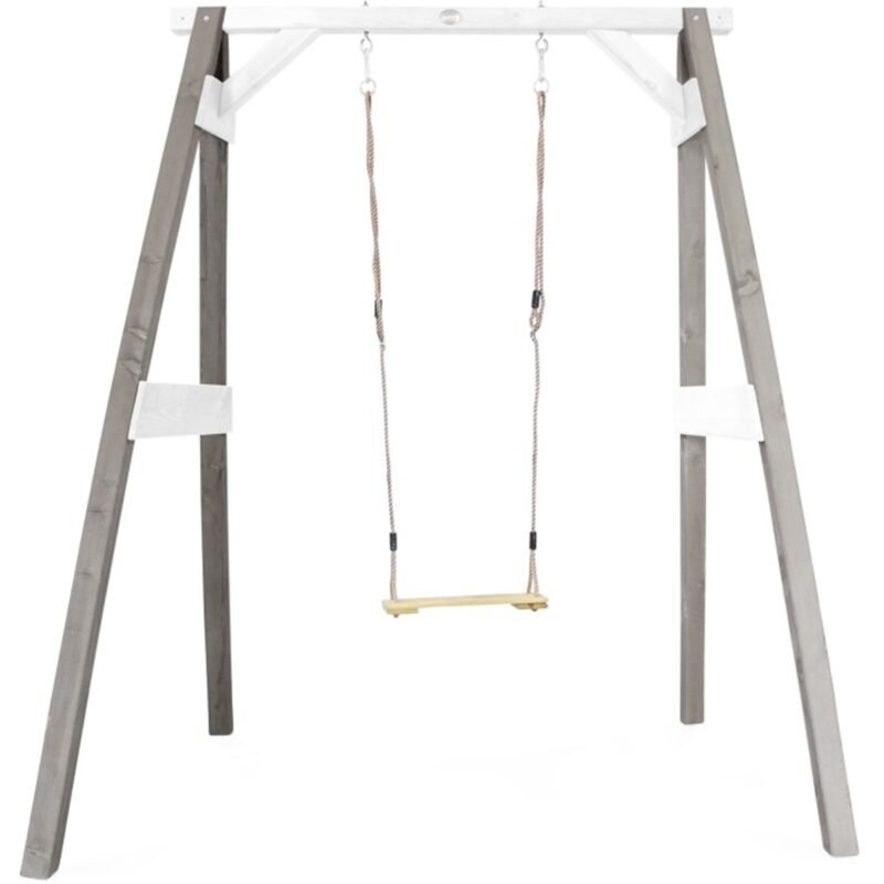 Axi Huśtawka drewniana szarazestaw plac zabaw Drewniany zestaw huśtawek Axi składa się z pojedyńczej tradycyjnej huśtawki. Dzięki szerokiej rozpiętości może ona dostarczyć niezapomnianych chwil ruchu na świeżym powietrzu, śmiechu i zabawy na długie lata, tak jak każdy inny produkt firmy Axi.