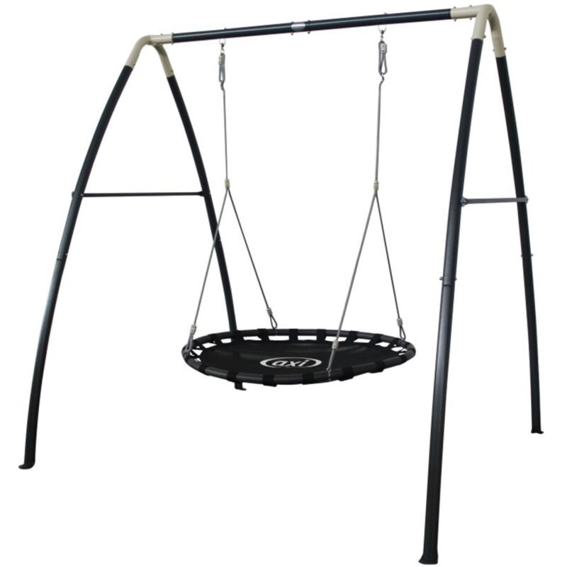 ✔ Solidna huśtawka z siedziskiem typu gniazdo (Ø 120 cm) wykonana z wodoodpornego materiału i stali malowanej proszkowo