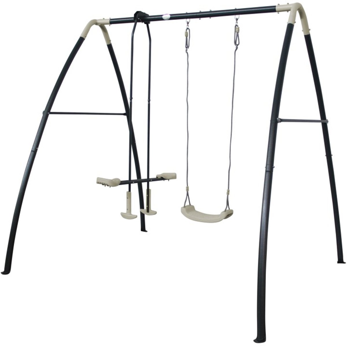 • – Huśtawka metalowa z huśtawką pojedynczą i huśtawką podwójną,
