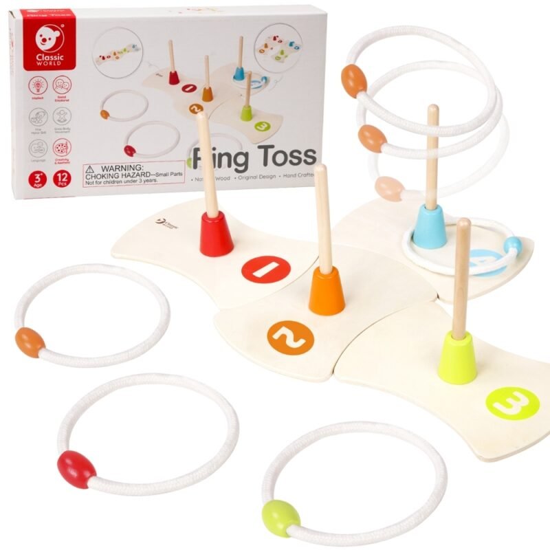 Świetna, zręcznościowa gra Rzutki renomowanej marki Classic World. Sprawdzi się jako urozmaicenie każdej imprezy, do zabawy zarówno w domu, jak i na dworze. Ta mobilna gra to ćwiczenie zręczności z odrobiną rywalizacji. To co decyduje o wyjątkowości tej gry to wysokiej jakości wykonanie z ekologicznych materiałów. Gra składa się z 4 elementów służących za podstawę, elementy nie są ze sobą trwale złączone co sprawia, że sami decydujecie jak chcecie je ułożyć. Można w kwadracie lub podłużnie. Dzięki mobilności poszczególne elementy możecie też wykorzystać do innych zabaw ruchowych na dworze.