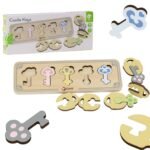 Drewniany Zamek z Kluczami od marki CLASSIC WORLD to sensoryczna układanka dla malucha. Gra polega na dopasowaniu pięciu unikalnych kluczy do pasujących zamków, klucze można również schować do tablicy która posiada miejsce na każdy z kluczy. Doskonały do koordynacji ręka-oko małych dzieci i poznania graficznego.