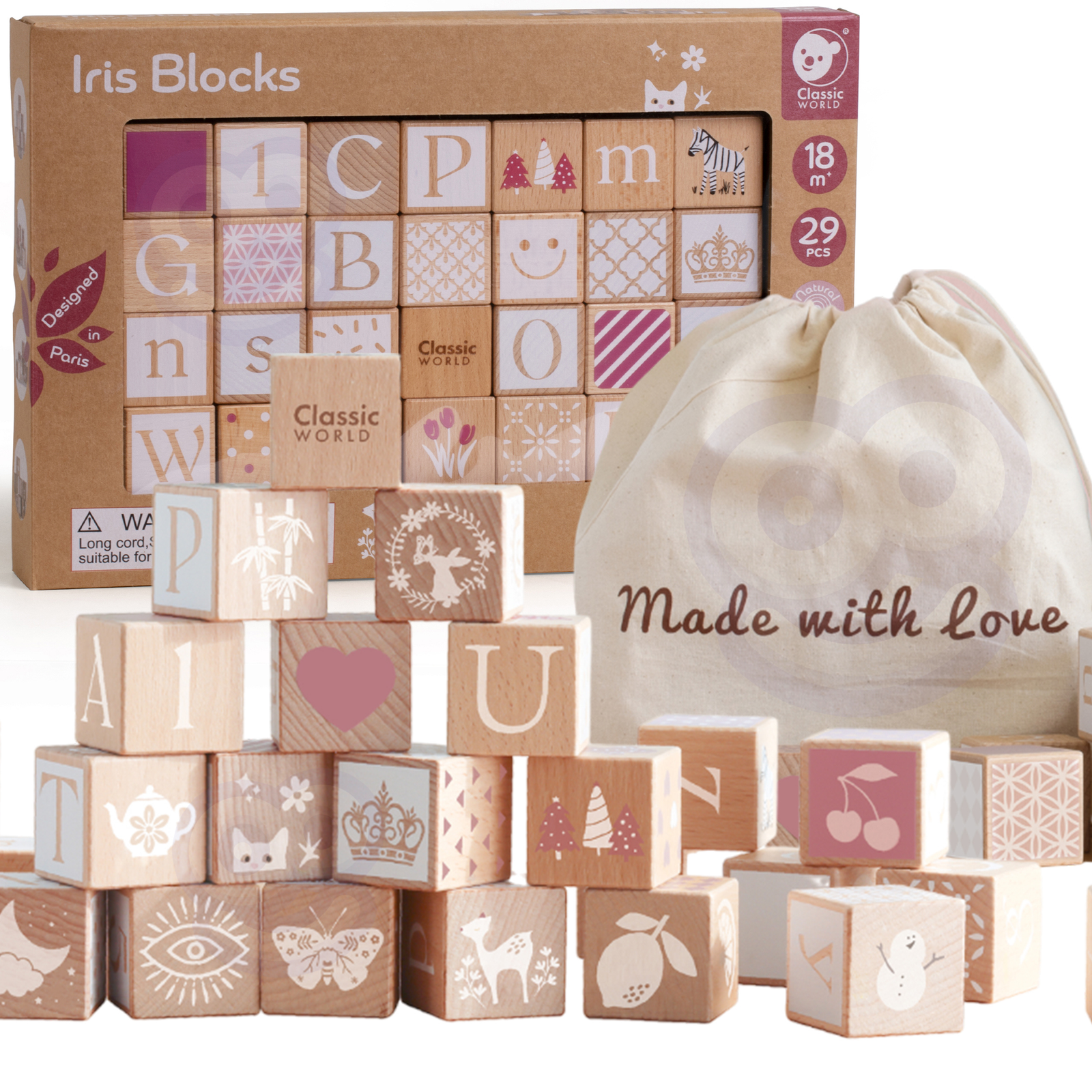 Zestaw klocków drewnianych od marki CLASSIC WORLD to klasyczna zabawka skutecznie rozwijająca intelekt dziecka. Wspiera zabawę konstrukcyjną, dążenie do celu, kreatywność, rozwiązywanie problemów i podstawy STEM. Zabawka składa się z 29 różnych klocków. Można na nich wykonywać działania matematyczne, uczyć alfabetu i analizować obrazki. Taka zabawa wspiera świadomość przestrzenną, naukę kolorów, kształtów, rozmiarów i funkcjonalności. Zapakowane w kartonowe ładne pudełko idealnie pasujące na prezent.