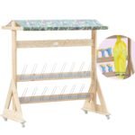 Wieszak od renomowanej marki Classic World to idealne dopełnienie placu zabaw! Produkt jest wyprodukowany z wysokiej jakości drewna, pomalowany nietoksycznym impregnatem, w pełni bezpiecznym dla dzieci. Można powiesić np. kalosze oraz kurtki przeciwdeszczowe. Posiada daszek w stylu moro oraz kółka do łatwego przesuwania. Idealny do instytucji i nie tylko. Produkt wysokiej jakości.