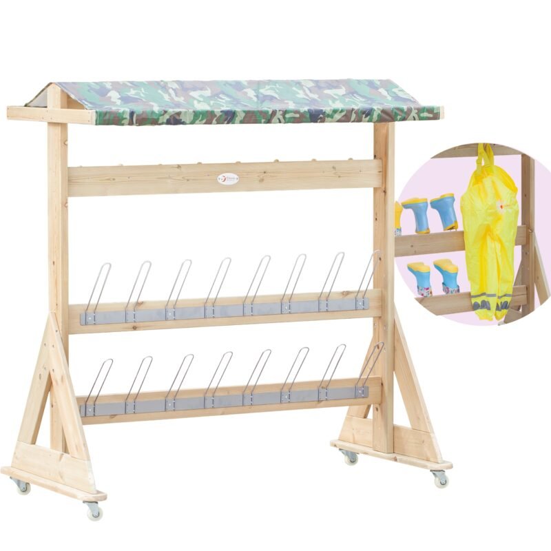 Wieszak od renomowanej marki Classic World to idealne dopełnienie placu zabaw! Produkt jest wyprodukowany z wysokiej jakości drewna, pomalowany nietoksycznym impregnatem, w pełni bezpiecznym dla dzieci. Można powiesić np. kalosze oraz kurtki przeciwdeszczowe. Posiada daszek w stylu moro oraz kółka do łatwego przesuwania. Idealny do instytucji i nie tylko. Produkt wysokiej jakości.