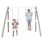 Axi Huśtawka drewniana szara zestaw plac zabaw Drewniany zestaw huśtawek Axi składa się z dwóch tradycyjnych huśtawek. Dzięki szerokiej rozpiętości wieku dzieci korzystających z huśtawki, może ona dostarczyć niezapomnianych chwil ruchu na świeżym powietrzu, śmiechu i zabawy na długie lata, tak jak każdy inny produkt firmy Axi.