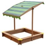 - – piaskownica wyposażona jest w materiałowy daszek, który posiada możliwość regulacji wysokości i kąta nachylenia