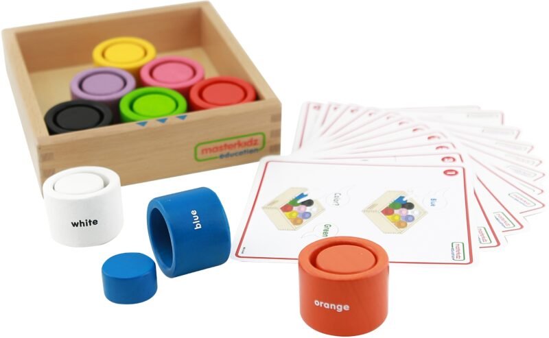 Zabawka sensoryczna dla dzieci, zestaw kolorowych klocków i kubeczków, które można układać jeden w drugim. Zabawki podzielone są na 9 kolorów, a kubeczki są dodatkowo podpisane. Jest to świetna pomoc w nauce kolorów, oraz motoryki małej. W zestawie znajdują się karty z wyzwaniami i grami dla dzieci z użyciem klocków i kubeczków.