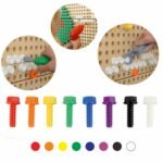 Kolorowe śrubki do wkręcania w drewnianą tablicę edukacyjną Masterkidz STEM to świetny element, dzięki któremu Twoje dziecko nie tylko w piękny sposób ozdobi swoją tablicę i stworzy niesamowite rysunki, ale za sprawą specjalnych narzędzi, które należy dokupić osobno, nauczy się również używania narzędzi ręcznych, oraz wkrętarki elektronicznej.