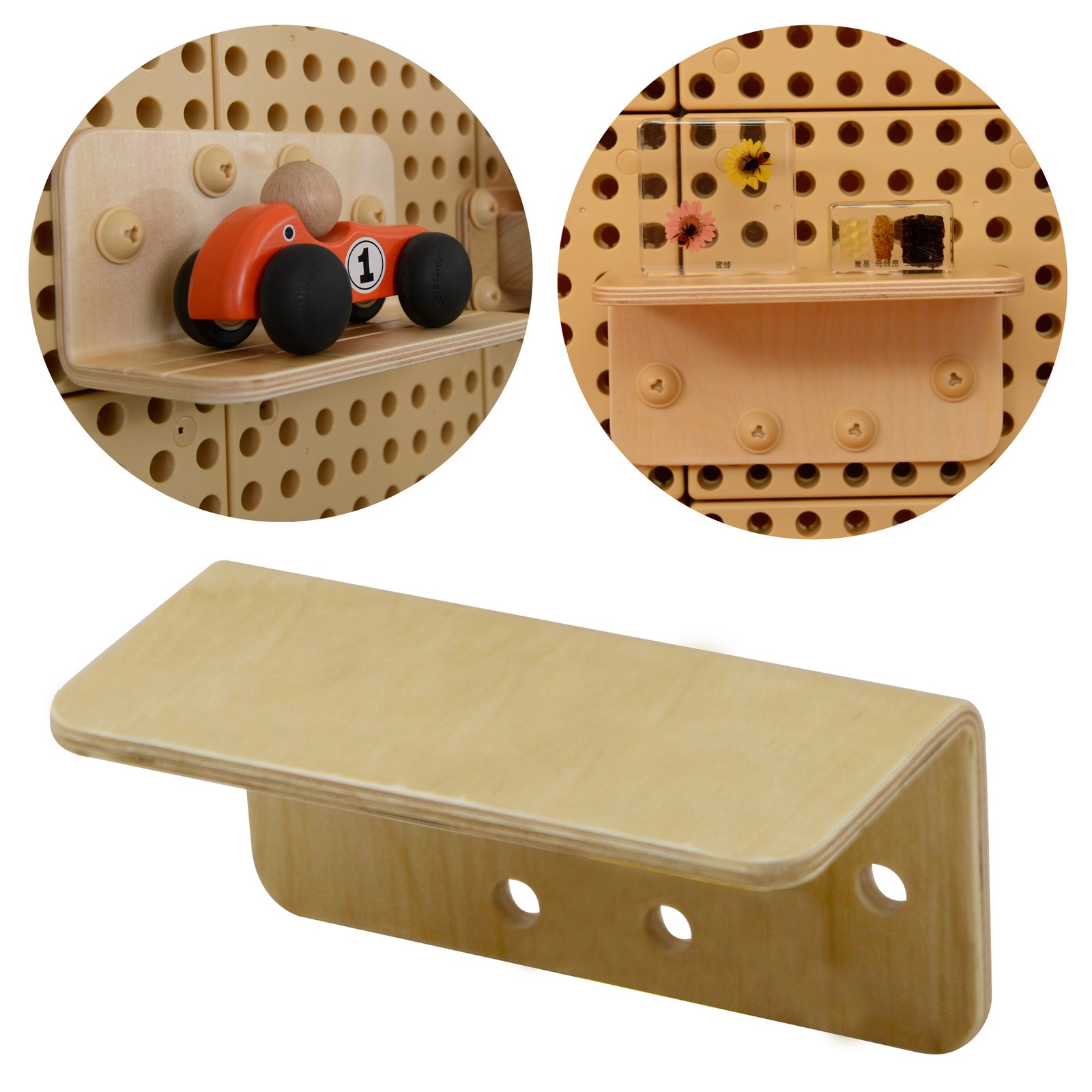Drewniana półeczka o szerokości 20cm to świetny dodatek do Tablicy Naukowo-Edukacyjnej Masterkidz STEM. Pozwala na przymocowanie w dowolnym miejscu na tablicy, a następnie postawienie na niej dowolnego przedmiotu. Mogą to być zabawki, które dzieci lubią mieć pod ręką w trakcie zabawy, ale mogą to być także wszelkiego rodzaju ozdoby, oraz akcesoria. Półeczka montowana jest przy pomocy specjalnych śrubek Masterkidz, które zaprojektowane są w taki sposób, by dziecko przypadkowo lub specjalnie nie zdemontowało elementu. Demontaż nie jest możliwy przy pomocy narzędzi do zabawy Masterkidz, więc dodatek jest w pełni bezpieczny dla dzieci.