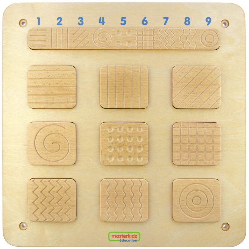 Tablice sensoryczne to świetne zabawki, dzięki którym stymulowane są zmysły maluchów. W przypadku tablicy Rozpoznawanie Faktury, rozwijany jest zmysł dotyku, dzięki czemu później skuteczniej może być wykorzystywany przy poznawaniu otoczenia. Zabawa polega na tym, by z zamkniętymi oczami odnaleźć parę pasujących do siebie fakturą płytek. Zadanie nie jest tak proste, jak może się wydawać, a dziecko musi się bardzo skupić i wysilić zmysły.