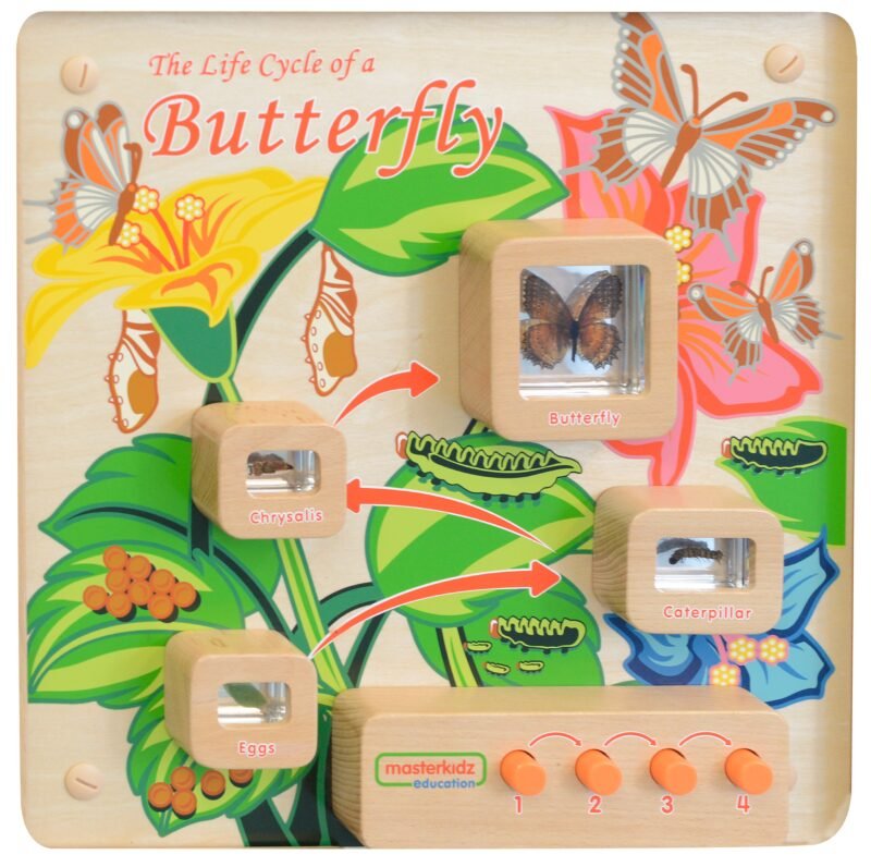 Tablice edukacyjne Masterkidz z serii “cykl życia” to świetne pomoce dydaktyczne, przydatne nie tylko na lekcjach przyrody w szkole. Tablica przedstawiająca etapy rozwoju motylków pokazuje każdy krok z cyklu. Za pomocą guziczków podświetl każdy z kolejnych etapów i przyjrzyj się jajeczkom, gąsieniczce, poczwarce, oraz imago.
