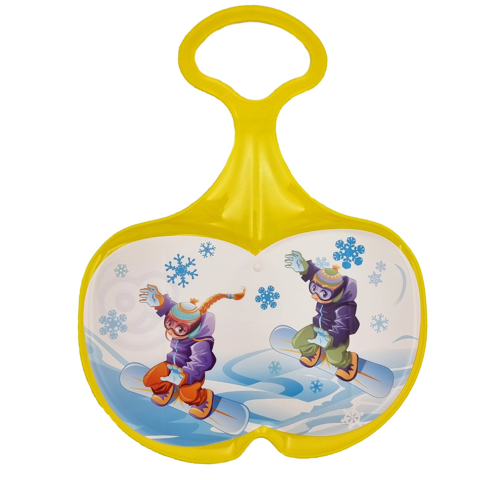 Mochtoys Jabłuszko Do Zjeżdżania Żółte. Zabawka do zjazdów, ślizgania się po śniegu dla dzieci. Czas na zabawę na śniegu! Super frajda ze zjeżdżania z górki na pazurki. Piękna kolorystyka. Zabawka przeznaczona jest wyłącznie do zabaw na śniegu, tylko i wyłącznie pod nadzorem osoby dorosłej. Podczas zjazdu jabłuszko powinno być skierowane uchwytem w kierunku jazdy. Należy zjeżdżać w pozycji siedzącej, zapewniającej najlepszą stabilność podczas zjazdu. W trakcie zabawy używaj odpowiedniego ubrania ochronnego kask, rękawice. Łatwo wyczyścisz jabłuszko za pomocą wilgotnej i suchej szmatki. Najwyższej jakości materiały zapewniają dobrą wytrzymałość i trwałość kolorów. Zaproś przyjaciół do zabawy! Ulubiona forma zabawy wszystkich dzieci.