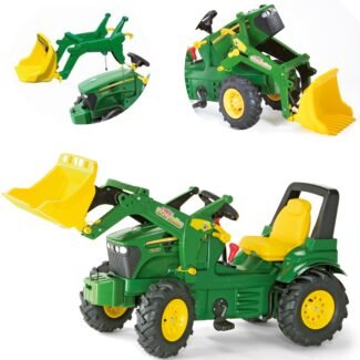 – Komplet zawiera zarówno traktor, przyczepęb jak i ruchomą łyżkę, co dodatkowo uatrakcyjnia zabawę i umożliwia przewożenie oraz załadunek różnych przedmiotów.