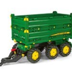 Przyczepa wywrotka Rolly Toys zielona trzyosiowa – przyczepa Mega Trailer John Deere posiada możliwość wyładunku wywrotki na 3 strony. Jest stabilna, ponieważ posiada 3 osie kół. Pasuje do każdego pojazdu Rolly Toys wyposażonego w uchwyt do holowania przyczepy. Zabawki Rolly Toys to najwyższej jakości oryginalny, niemiecki produkt, który posłuży Twoim dzieciom przez wiele lat.