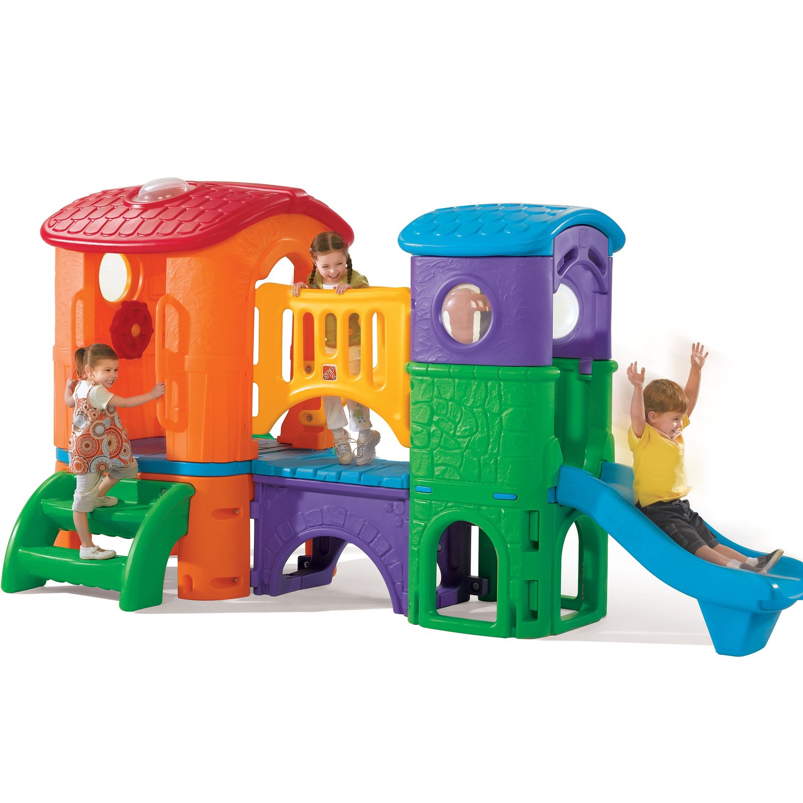 “Most z tunelem” to jeden z najatrakcyjniejszych placów zabaw w ofercie amerykańskiej firmy Step2. W jego skład wchodzą: wieżyczka połączona mostkiem z małym domkiem oraz mnóstwo innych atrakcji dla maluchów. Wśród nich należy wyróżnić tunel, mała zjeżdżalnia, drabinka do wspinaczki, miejsce na kryjówkę.