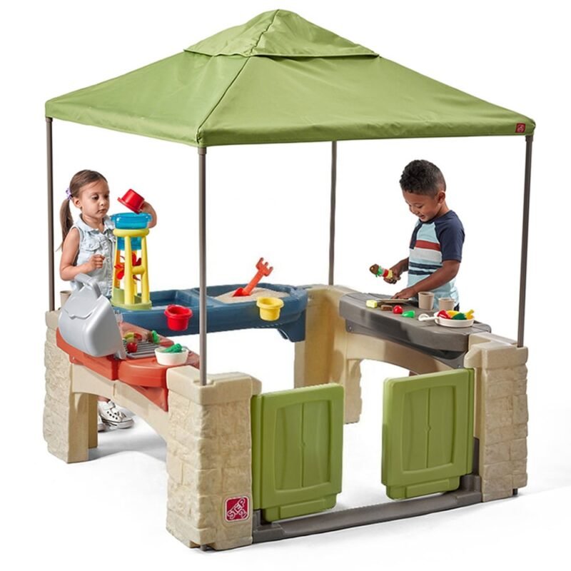 Patio z Baldachimem i grillem amerykańskiego producenta zabawek Step2 to świetny dodatek do przydomowego placu zabaw. Dzieci mogą organizować własne przyjęcia dla swoich znajomych. Realistyczne i atrakcyjne wzornictwo idealnie wkomponuje się do każdego ogrodu. Mali kucharze będą mogli godzinami bawić się w kuchni, udając że przygotowują i grillując swoje ulubione potrawy, zupełnie jak mama i tata.