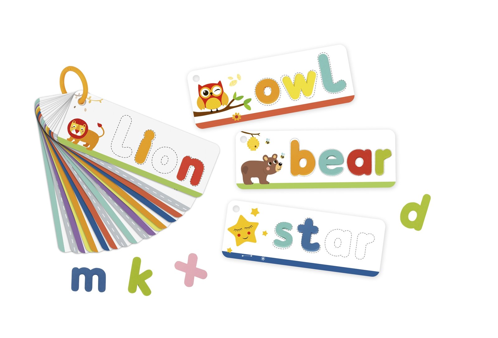 Karty z ilustracjami zwierzątek z klockami do dopasowania w kształcie liter od marki Tooky Toy to świetny sposób, aby pomóc dzieciom w rozpoznawaniu liter alfabetu i rozwijaniu wczesnego słownictwa. Każda karta ma rysunek zwierzęcia i kontury imienia zwierzęcia, w którym dzieci muszą ułożyć odpowiednie litery do umieszczenia w konturze. Sprzedawane z przyjazną dla dzieci obręczą, aby złożyć wszystkie karty razem po zakończeniu.