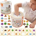 - – zestaw zawiera 20 klocków, 20 kart oraz opakowanie z dziurką przez, które dziecko bawi się w “dotknij i poczuj”,