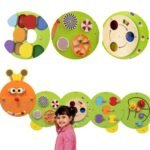 Wielofunkcyjna tablica ścienna z uroczym wizerunkiem gąsienicy. Zestaw składa się z 5 tablic z różnymi funkcjami. Tablice są bardzo łatwe w montażu i demontażu, jak również w transporcie. Tablica z wizerunkiem gąsienicy jest zabawką, na której jednocześnie może się bawić kilkoro dzieci. Mogą nie tylko bawić się dla przyjemności, ale także wiele się nauczyć. Pomaga w nauce kolorów, dźwięku, grafiki. Rozwija również koordynację ręka-oko oraz umiejętności społeczne. Genialna kombinacja zabawek dla szkół, przedszkoli, centrów nauki oraz miejsc publicznych. Produkt przeznaczony dla dzieci powyżej 18 miesiąca życia.