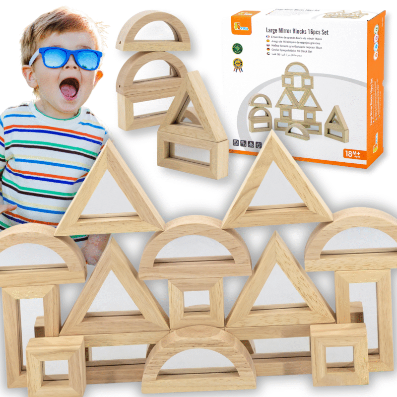 - – zestaw składa się z 16 drewnianych dwustronnych klocków lustrzanych,