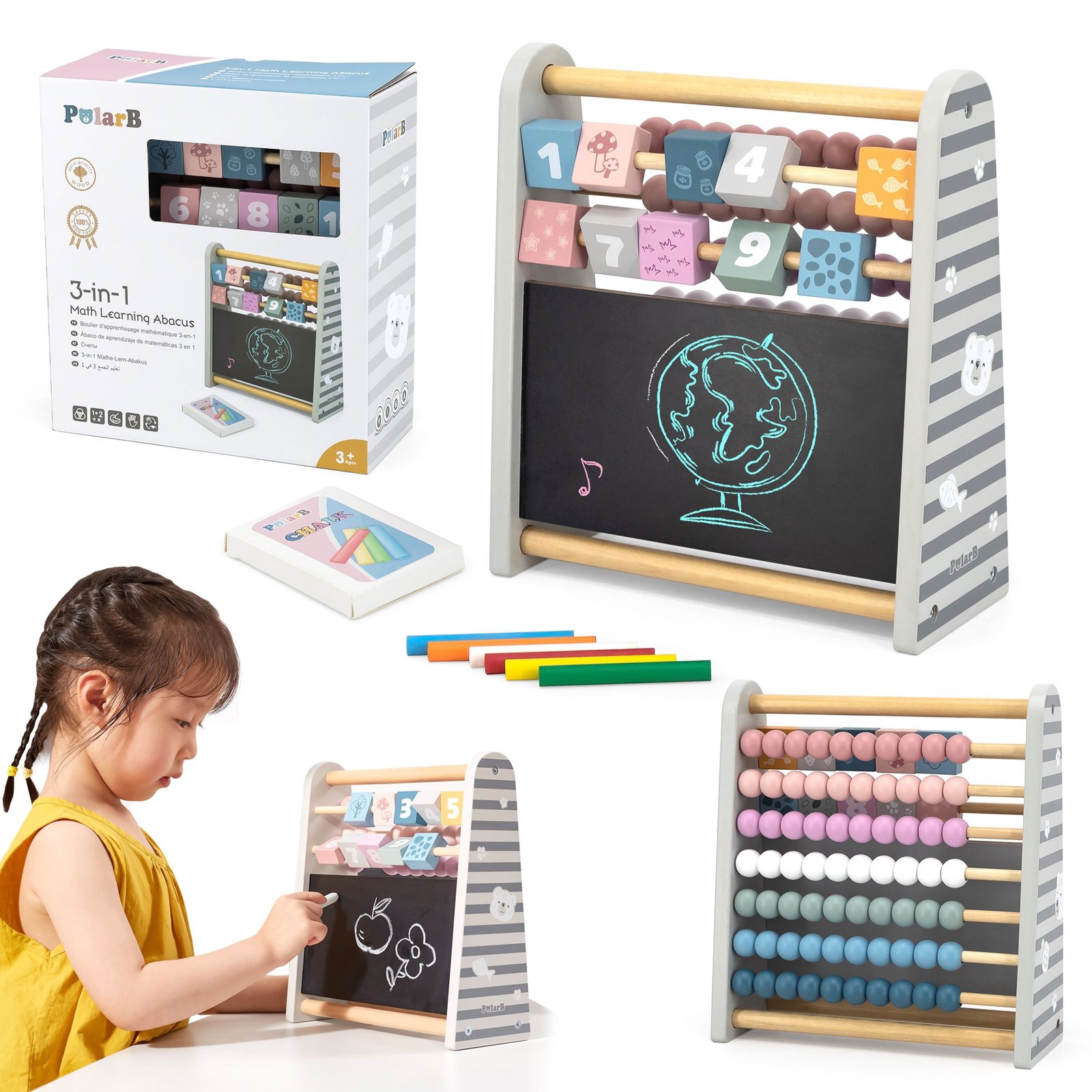 Dwustronna Tablica 3w1 do rysowania z liczydłem cenionego producenta zabawek Viga PolarB dla dzieci od 3 roku życia idealna do przedszkola jak i do domu.