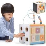 Kostka Aktywności 8w1 od marki Viga jest świetną zabawką, która w genialny sposób łączy piękno z zabawą i nauką. Została ona doceniona w Stanach Zjednoczonych, gdzie w 2023 roku otrzymała prestiżową nagrodę PAL Awards 2023 przyznawaną przez dyplomowanych logopedów. Wszechstronny sześcian otwiera nowy świat możliwości dla młodych umysłów, wspierając rozwój poznawczy, umiejętności językowe i wzmacniając znaczące interakcje pomiędzy dziećmi a opiekunami. Poprzez zabawę pozwala na wprowadzanie nowych słów, pojęć i zachęca do samodzielnego myślenia.