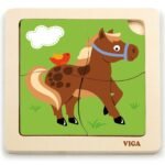 Drewniane Puzzle od Viga dla dzieci od 12 miesiąca życia to idealne rozwiązanie do domu, jak i do przedszkola. Składa się z planszy, oraz 4 elementów tematycznych, które należy do niej zamontować. Na drewnianej podstawce znajduje się narysowany gotowy obrazek, dzięki czemu dziecku jest łatwiej dopasować obrazek. Całość wykonana została z drewna, pomalowana bezpiecznymi dla dziecka farbami w żywe barwy, które zadowolą każdego użytkownika i dadzą mnóstwo radości z zabawy.