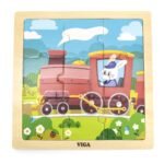 - – 9 elementów puzzli z ciuchcią,
