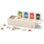 - – zawiera drewnianą skrzyneczkę z pokrywą z otworami do wrzucania płytek,