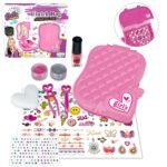 Zestaw do Malowania Studio Makijażu od marki WOOPIE z serii ART&FUN wprowadzi dziewczynki w świat mody i pozwoli wykreować swój własny styl! Zestaw wygląda jak w prawdziwym salonie urody. Zestaw zawiera: toaletkę, 2 brokaty sypkie, zestaw naklejek i tatuaży, lakier, pilnik-serce, pęsetę oraz dłutko. Wystarczy nanieść lakier i naklejki na paznokcie oraz tatuaże na skórę, a po wszystkim wysuszyć i gotowe! Zestaw w 100% bezpieczny dla dzieci. Zestaw rozwija pierwsze zainteresowania, zdolności manualne, a przede wszystkim wyobraźnie i kreatywność w tworzeniu unikalnego stylu!