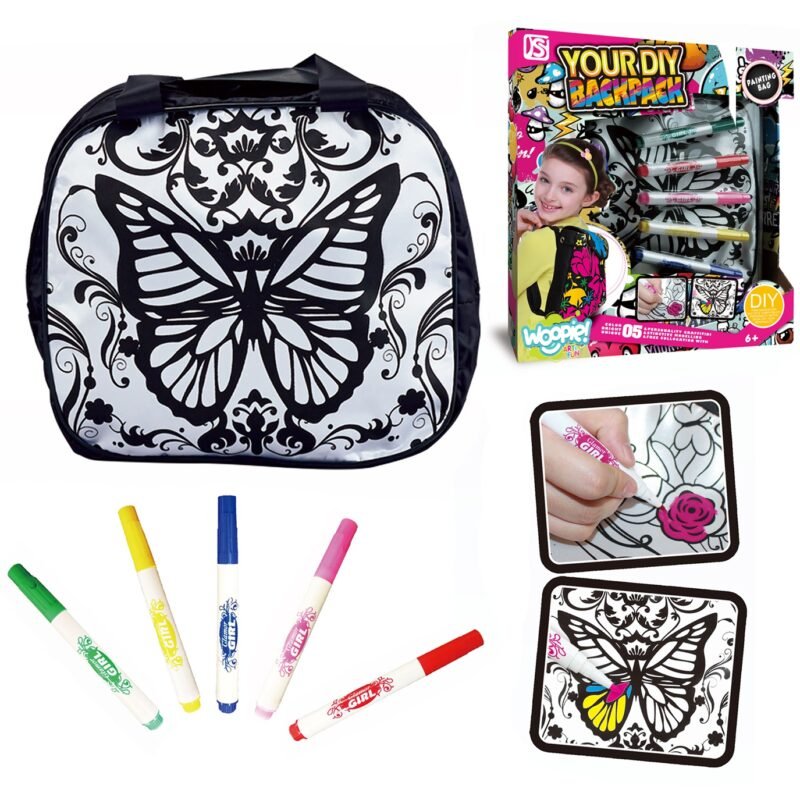 Zestaw Plastyczny dla Dziewczynki od marki WOOPIE rozwinie wyobraźnie Twojego dziecka. Zabawa polega na pokolorowaniu torebki. 5 flamastrów o różnych kolorach pozwala na dowolne wyznaczanie kolorów na torebce – ograniczeniem jest tylko własna wyobraźnia. Po pomalowaniu zabawka może spełniać funkcje klasycznej torby do trzymania lub przenoszenia rzeczy. Zabawa w tworzenie/kolorowanie torebki pozytywnie wpływa na rozwój dziecka, kształtuje jego zdolności plastyczne wraz z rozwojem wyobraźni oraz kreatywności, ćwicząc jednocześnie koncentrację; rozwija zdolności manualne/motoryczne tzw. “małą motorykę” (ruch rączek).
