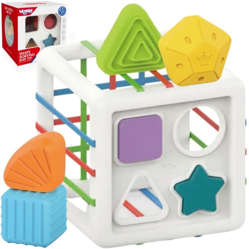 Elastyczna Kostka Sensoryczna od marki WOOPIE pobudzi rozwój Twojego dziecka! Zabawa dziecka polega na wkładaniu i wyjmowaniu elementów z edukacyjnej kostki, dodatkowo jedna ściana to klasyczny sorter z dopasowaniem konkretnych figur geometrycznych. Dziecko podczas zabawy rozwija zmysły oraz poprawia zdolności manualne. Każdy z klocków wyróżnia się, co budzi ciekawość dziecka na tyle, by chciało je wyciągnąć i włożyć z powrotem do sortera. Zabawka rozwija sensorykę i umysł dziecka, a także zachęca do eksperymentowania. Dodatkowo, gdy dziecko podrośnie klocki można wykorzystać do nauki kolorów i kształtów. Niezbędna zabawka dla dziecka we wczesnym etapie życia!