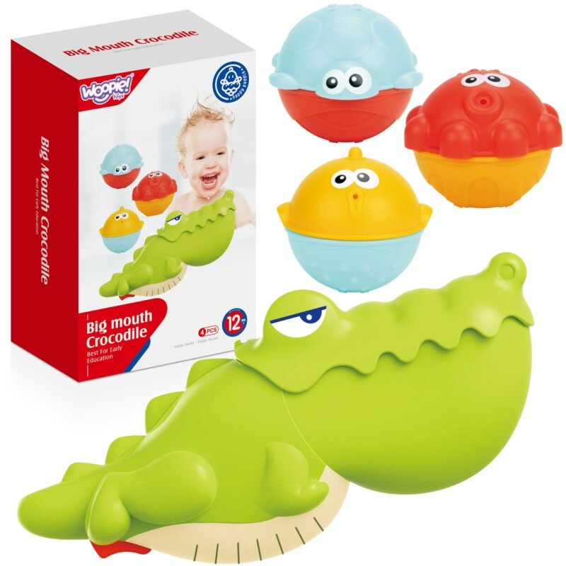 Krokodylek i Rybki od marki WOOPIE to zestaw umilający kąpiel dzieciom. Zabawa polega na łapaniu rybek do buzi krokodylka. Paszcza otwiera się po naciśnięciu guzika. Zabawka zachęci dziecko do kąpieli!