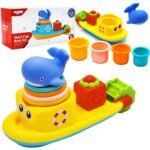 - – zestaw składa się z: wieloryba, 4 kubeczków z otworami oraz statku,