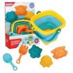 Silikonowe wiaderko z grabkami, łopatką i foremkami od marki WOOPIE. Fantastyczne wiaderko do piaskownicy, na plażę lub do ogrodu, dzięki któremu dzieci miło spędzą czas na świeżym powietrzu. Wiaderko, dzięki składanej konstrukcji, zajmuje niewiele miejsca, jest łatwe w transporcie i wygodne do przechowywania. W zestawie dołączone są trzy foremki do piasku. Zestaw zmieści się do dziecięcego plecaczka, do wózka czy plażowej torby. Góra, spód i rączka wiaderka są plastikowe, a ścianki wykonane są z grubego silikonu składanego harmonijkowo. Plastikowe są również grabki i łopatka.