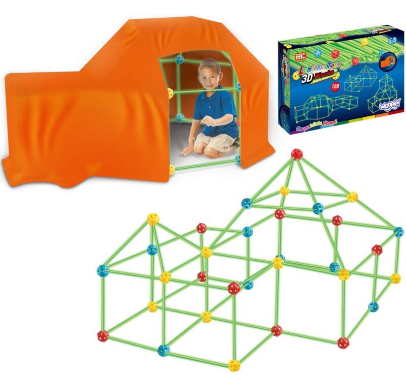 Zestaw Konstrukcyjny od marki WOOPIE obudzi wielkiego konstruktora w Twoim dziecku! Zestaw zawiera 128 elementy w tym rurki łączniki i materiał do okrycia konstrukcji. Elementy umożliwiają na połączenie ich w przestrzenną budowlę jak namiot, przykryty materiałem. Zestaw świeci w ciemności, co pozwala na kreatywną zabawę w domu jak i na świeżym powietrzu.