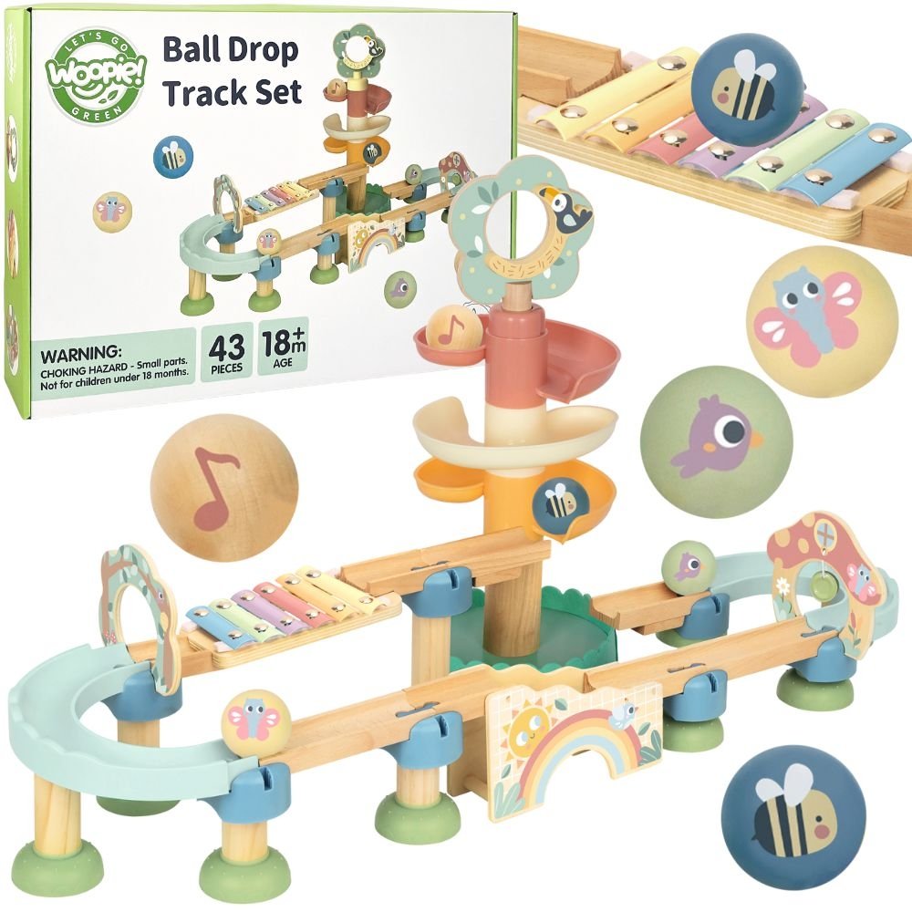 Przepiękny drewniany tor kulkowy od Woopie Green to wyjątkowa zabawka, która łączy w sobie elementy ruchu, dźwięku i nauki poprzez zabawę. To idealny zestaw dla najmłodszych odkrywców świata, którzy z radością obserwują, jak kolorowe kulki toczą się po torze, wprawiając w ruch różne elementy i wydając przyjemne dźwięki. Całość utrzymana jest w pastelowej, przyjaznej kolorystyce, która przyciąga wzrok i wprowadza do zabawy ciepłą, spokojną atmosferę. Zabawka zachwyca nie tylko wyglądem, ale przede wszystkim funkcjonalnością i jakością wykonania – została zaprojektowana z myślą o rozwoju dziecka już od najmłodszych lat. Dzięki różnorodnym elementom – takim jak spiralne zjeżdżalnie, mostki, tory oraz cymbałki – dziecko może obserwować zmieniające się ruchy piłeczek, słuchać wydawanych przez nie dźwięków oraz eksperymentować z prędkością i kierunkiem ich toczenia. To doskonała forma zabawy, która jednocześnie rozwija i bawi. Zabawka sprawdzi się w domu, przedszkolu lub jako efektowny prezent dla dziecka w wieku niemowlęcym i wczesnodziecięcym.