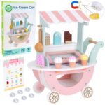 - – Bogaty zestaw akcesoriów: Zawiera lody na patyku, wafelki, kolorowe gałki, łyżkę do lodów, menu oraz drewniane monety – łącznie 27 elementów