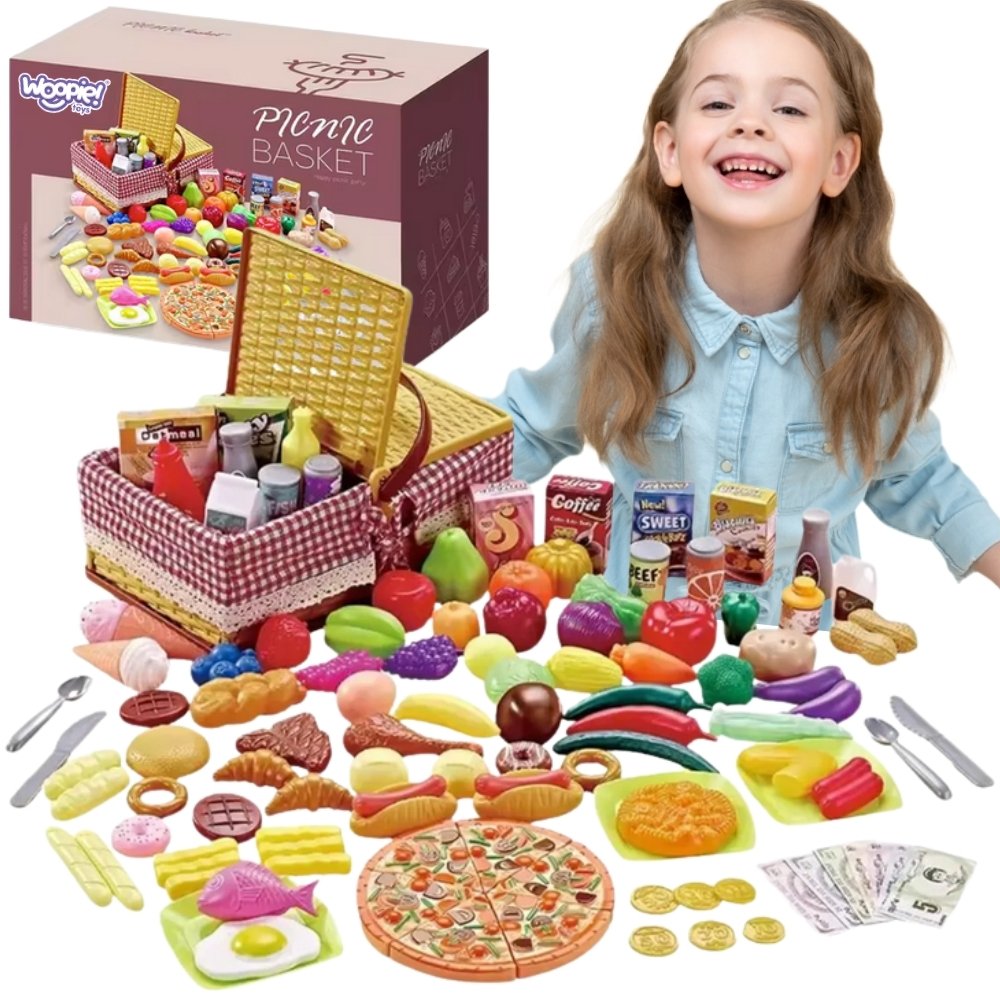 Kosz piknikowy dla dzieci od marki Woopie to prawdziwa gratka dla małych miłośników zabawy w dom, sklep czy gotowanie! To doskonała zabawka do wspólnego spędzania czasu z rodziną! Zabierz koszyk do ogrodu, na taras, plażę czy piknik w parku i zorganizuj małe przyjęcie pod gołym niebem. Dzieci mogą samodzielnie rozkładać jedzenie, przygotowywać posiłki dla misiów i lalek lub częstować rodziców pizzą i deserem. Zestaw ten przenosi dziecko w świat odgrywania ról, interakcji społecznych i kulinarnych przygód, jednocześnie wspierając jego rozwój. Wspólne posiłki na świeżym powietrzu, nawet w formie zabawy, uczą kultury jedzenia, dzielenia się i rozwijają wrażliwość społeczną. Dzięki aż 103 realistycznym elementom, zabawa staje się niesamowicie różnorodna i inspirująca. Zestaw zapakowany jest w uroczy koszyk piknikowy z rączką i zamykanym wieczkiem, który swoim wyglądem przypomina klasyczny wiklinowy kosz – ozdobiony czerwono-białą kratką i koronkową tasiemką . Jest łatwy w złożeniu i rozłożeniu, dzięki czemu doskonale sprawdzi się zarówno w domu, jak i w podróży. Całość została wykonana z trwałych, bezpiecznych materiałów, które spełniają wszystkie normy bezpieczeństwa dla dzieci. Dzięki temu zestawowi Twoje dziecko może bawić się samotnie lub z rodzeństwem i przyjaciółmi, ucząc się dzielenia, planowania posiłków i podstawowych zasad handlu.