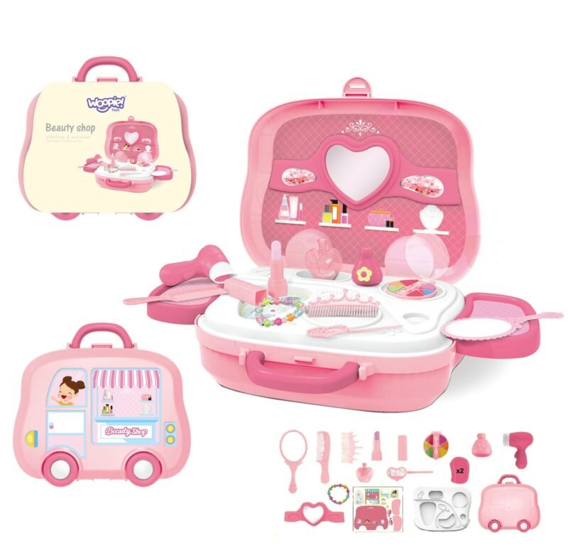 Przenośna Toaletka dla Dziewczynki w walizeczce od marki WOOPIE pozwoli Twojemu dziecku poczuć się jak prawdziwa modelka – wszędzie i kiedy tylko zechce! Dzieci marzą o zostaniu modelką lub uwielbiają eksperymentować ze stylem. Zestaw zawiera 12 akcesoriów: wszystkie potrzebne rzeczy, które posiada przenośny salon urody. Zabawka pełni funkcję walizki wyglądającej jak samochód z kółeczkami, co pozwoli zabrać zestaw wszędzie. Odgrywanie ról i naśladowanie zawodów rozwija świadomość Twojego dziecka oraz pobudza wyobraźnie i kreatywność.