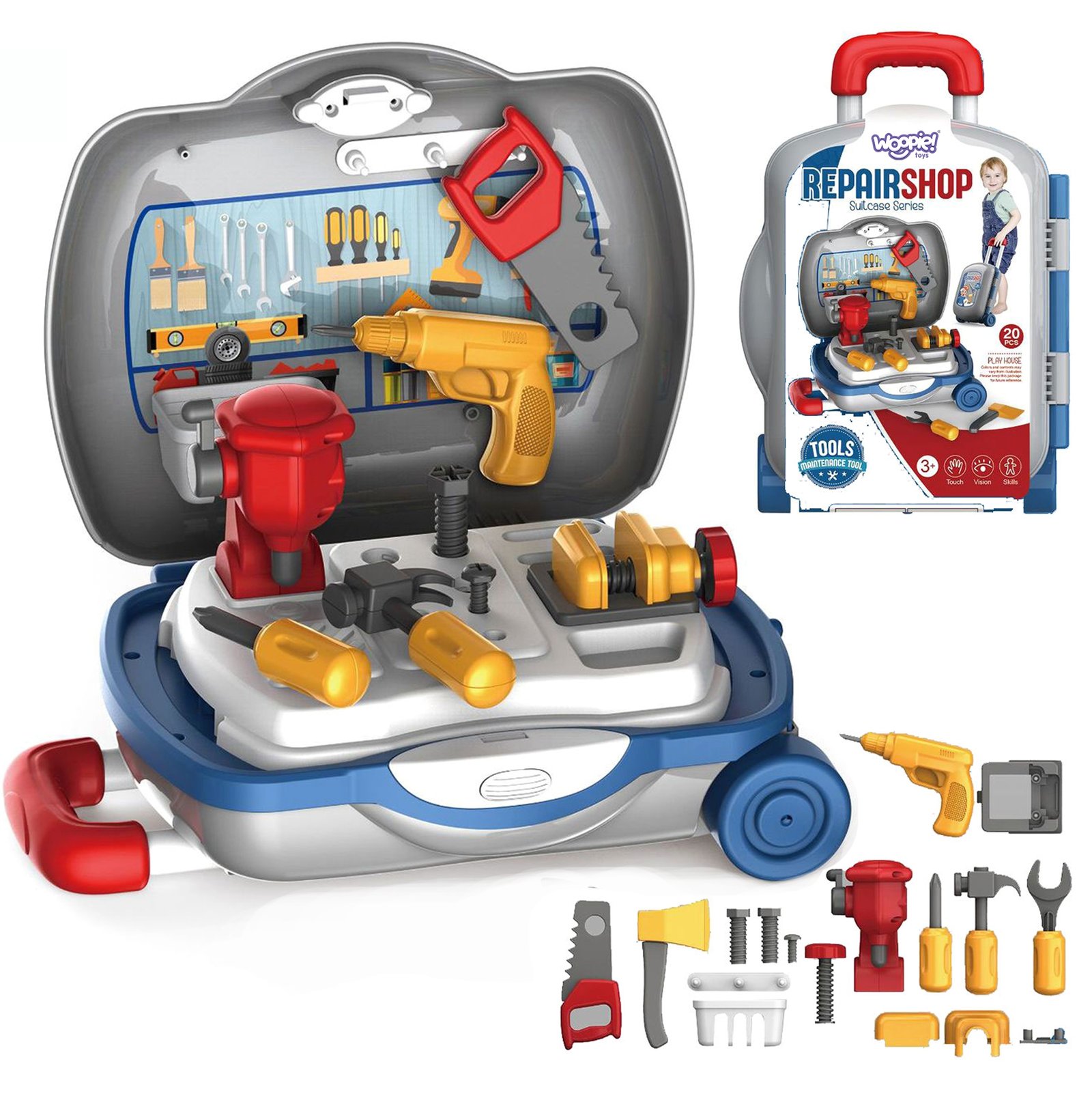 Zestaw Małego Majsterkowicza w Walizce od marki WOOPIE pozwoli Twojemu dziecku poczuć się jak by było prawdziwym majsterkowiczem- wszędzie i kiedy tylko zechce! Dzieci uwielbiają wcielać się w złotą rączkę i majsterkować oraz naśladować rodzica majsterkującego w garażu. Zestaw zawiera 17 elementów: wszystkie potrzebne rzeczy, które posiada każdy majsterkowicz. Zabawka pełni funkcję walizki, co pozwoli zabrać wszędzie zestaw małego majsterkowicza. Odgrywanie ról i naśladowanie rodziców/zawodów rozwija świadomość Twojego dziecka oraz pobudza wyobraźnie i kreatywność.