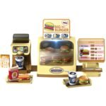 Mini Burger Shop “BIG BURGER” od marki WOOPIE to wspaniały zestaw do zabawy. Możemy obsługiwać Klientów, którzy wybierają dania prosto z oświetlonej lady! Posiada ekran z przyciskami po naciśnięciu których sklep oferuje nam efekty dźwiękowe! Możemy wlać wodę do dystrybutora, i nalewać ją do specjalnie przeznaczonych do tego kubków ze słomką. Zestaw rozwija zdolności manualne, wyobraźnię, kreatywność oraz zdolności samodzielnego myślenia.
