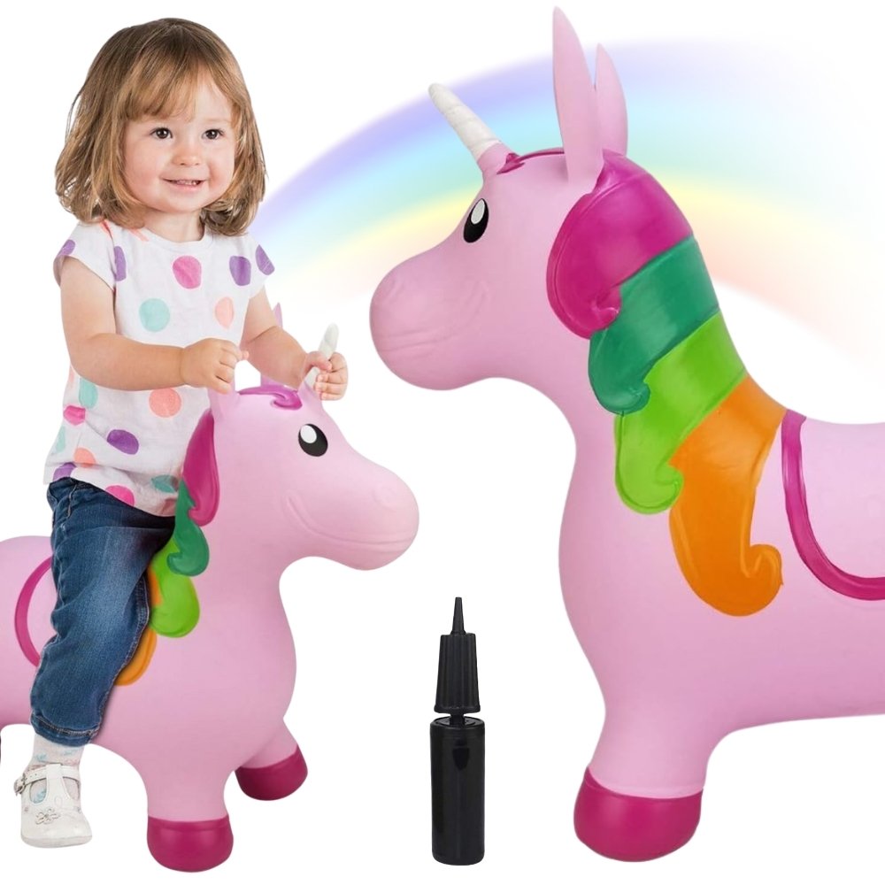 Wyrusz w fantastyczną podróż z uroczym, różowym jednorożcem do skakania od marki Woopie! Ta urocza, dmuchana zabawka to idealny sposób, aby zachęcić malucha do aktywnej zabawy, rozwijając jednocześnie jego koordynację i równowagę. Wykonany z bezpiecznych, trwałych materiałów i zaprojektowany z myślą o małych rączkach, jednorożec stanie się najlepszym przyjacielem Twojego dziecka, zapewniając godziny beztroskiego skakania w domu i na świeżym powietrzu. To idealny prezent, który rozbudzi wyobraźnię i przyniesie mnóstwo radości!