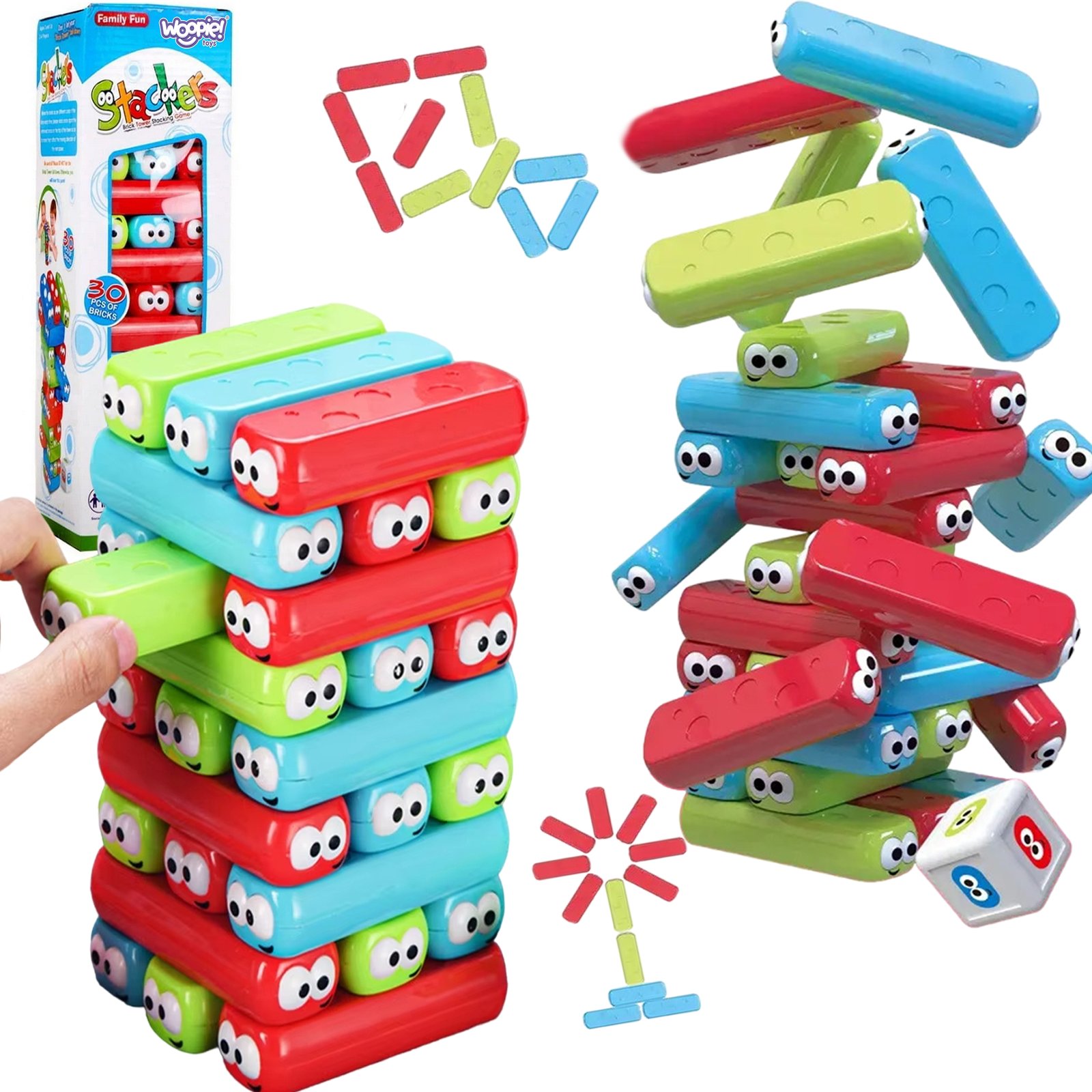 Gra zręcznościowa od marki WOOPIE to doskonała gra zręcznościowa integracyjna dla najmłodszych jak i starszych. Polega na wyciąganiu klocków tak, by nie zburzyć wieży. To idealna gra na spotkania rodzinne, która zadba o nasze relacje z dzieckiem. Zabawka zapewnia nam wiele emocji podczas gry. Jest niezwykle wciągająca i pasjonująca. Gra uczy Twoje dziecko sprytu, refleksu i rozwija jego umysł. Korzystnie wpływa na rozwój zdolności manualnych.