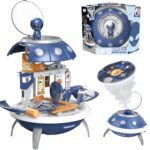 Warsztat UFO od marki WOOPIE to kosmiczny zestaw dla każdego dziecka! Zabawka posiada 3 funkcje. Można włączyć projektor i uczyć się nazw planet. Można użyć go jako stylowy plecak z marsjaninem. Podczas noszenia plecaka głowa marsjanina swobodnie porusza się za szybką statku. Jednak najważniejsza funkcją jest możliwość rozłożenia statku kosmicznego w super warsztat. Dziecko może wcielić się w majsterkowicza na marsie i bawić się wspólnie z przyjaciółmi. Zestaw zawiera aż 52 elementy: wszystkie potrzebne rzeczy, które posiada każdy warsztat. Funkcja plecaka pozwoli zabrać wszędzie swój własny, przenośny warsztat. Odgrywanie ról i naśladowanie zawodów rozwija świadomość Twojego dziecka oraz pobudza wyobraźnie i kreatywność.