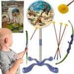 Zestaw łucznika z motywem Dinozaurów od firmy WOOPIE jest świetnym wyborem dla Twojego malucha. Zabawka w zestawie posiada łuk wraz z tarczą oraz 3 strzały z przyssawką na końcach, która daje odczucie prawdziwej strzały. Tarcza jest w motywie dinozaurów z różnymi celami i jest postawiona na stabilnej podstawce. Zabawka umożliwia ćwiczenie koordynacji wzrokowo-ruchowej przy trafieniu do celu. Wszystko w ładnych stonowanych kolorach, które przyciągają wzrok i zachęcają do zabawy.