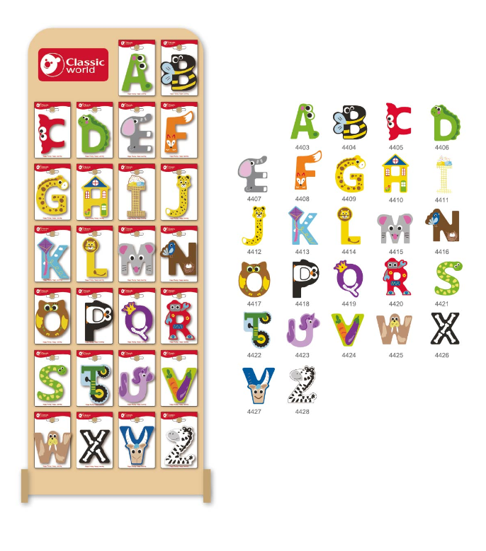 Classic World Zestaw Literek ze Stojakiem to idealny pomysł na dodatek do przedszkola. Zestaw literek przyciąga wzrok dzięki różnorodnej kolorystyce z motywem zwierzątek. Estetyczne wykonanie sprawia, że dziecko łatwiej będzie uczyć się ich rozróżniać. Zestaw literek to praktyczna edukacyjna zabawka. Dziecko bawiąc się pozna alfabet i nauczy się tworzyć pierwsze słowa.